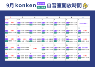 【9月】自習室開放時間のご案内