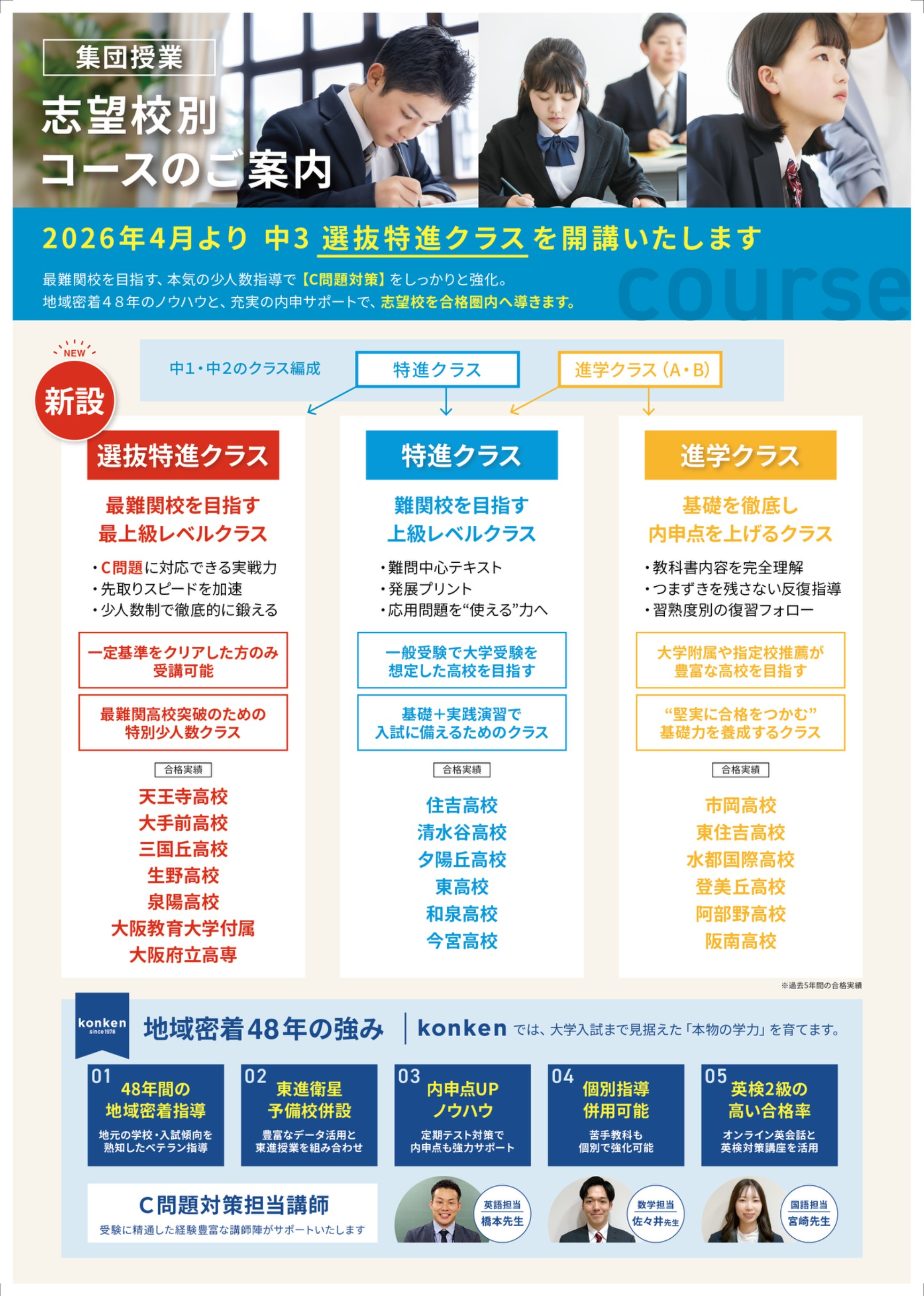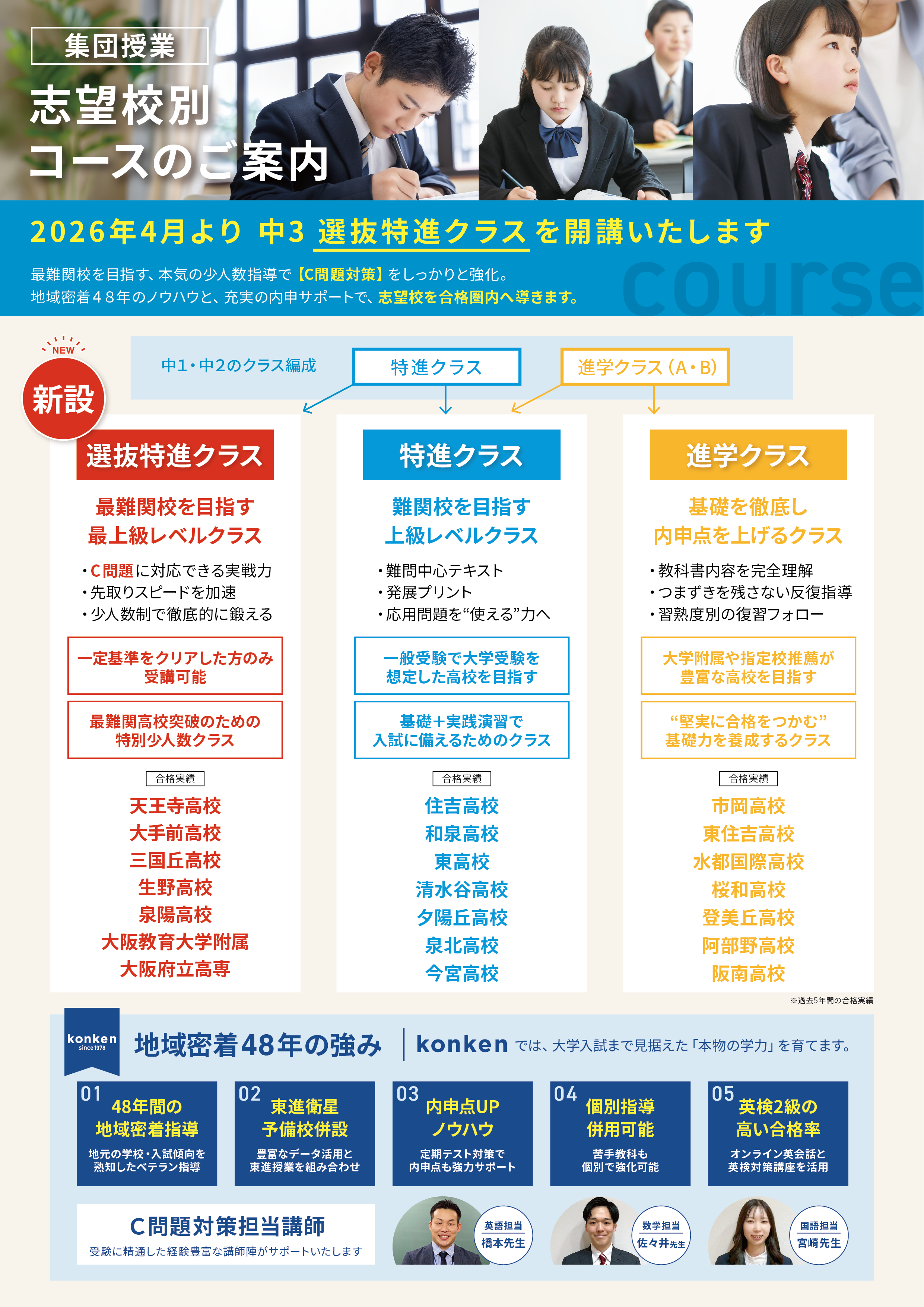 【中学生 集団クラス】志望校別・新設コースのご案内