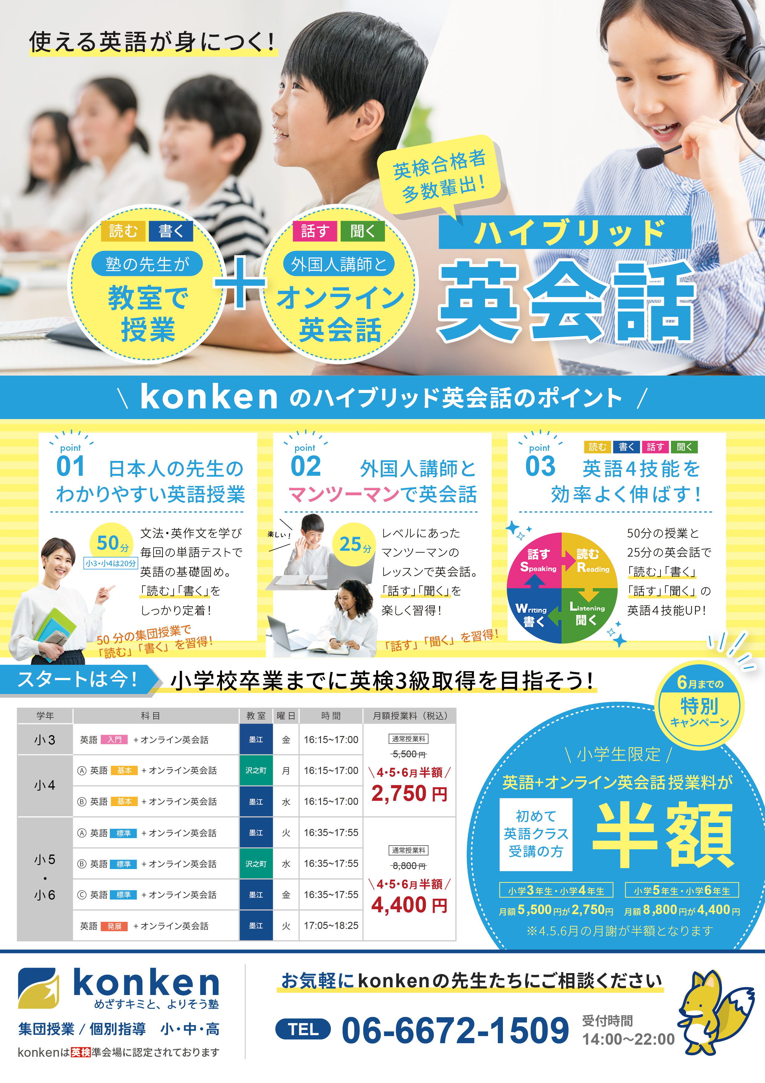 【小3~小6対象】2026年4月~新年度クラス『英語+オンライン英会話』3ヶ月半額キャンペーンのご案内