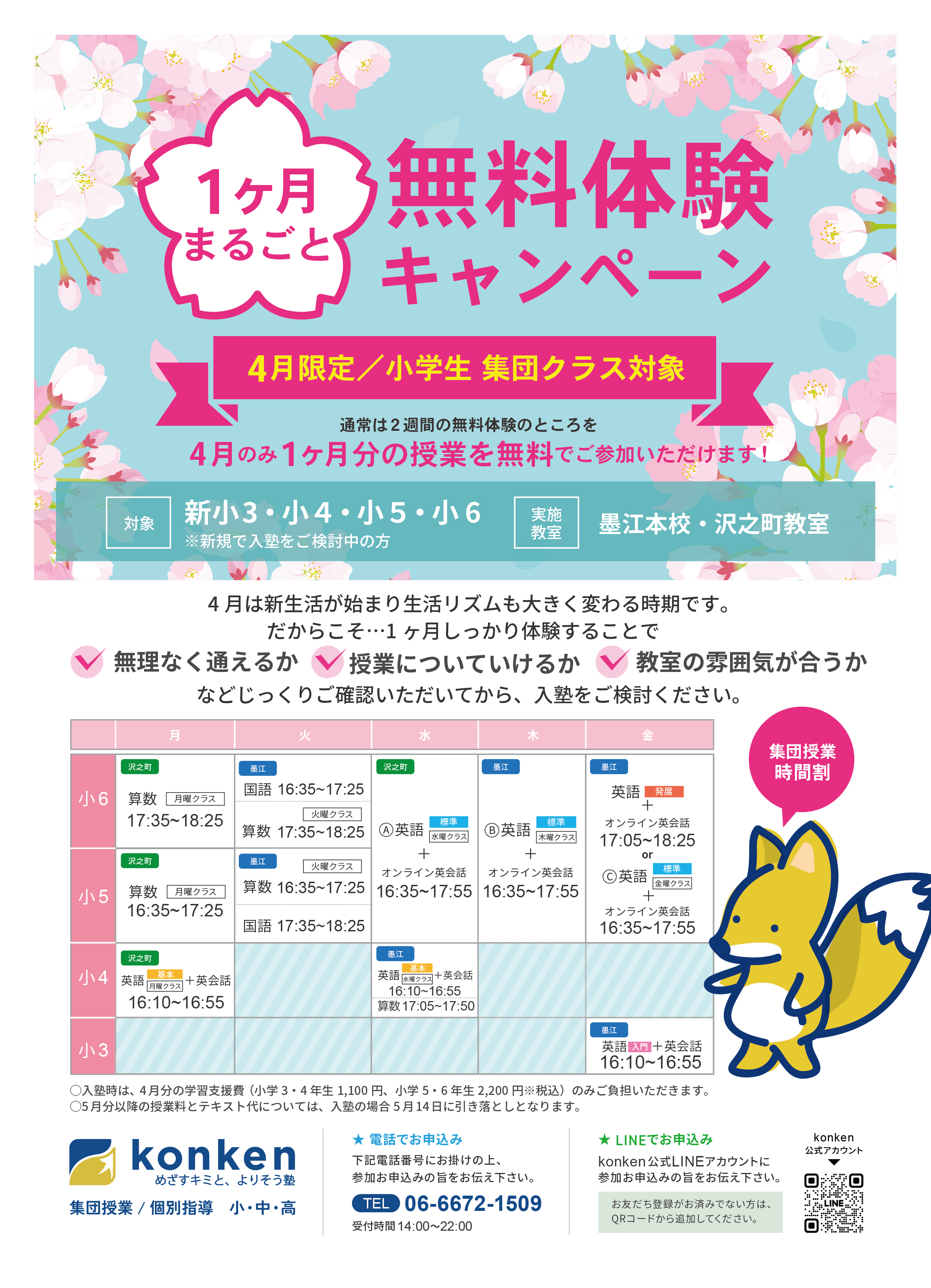 【4月限定】<小3~小6集団クラス>1カ月無料体験キャンペーン